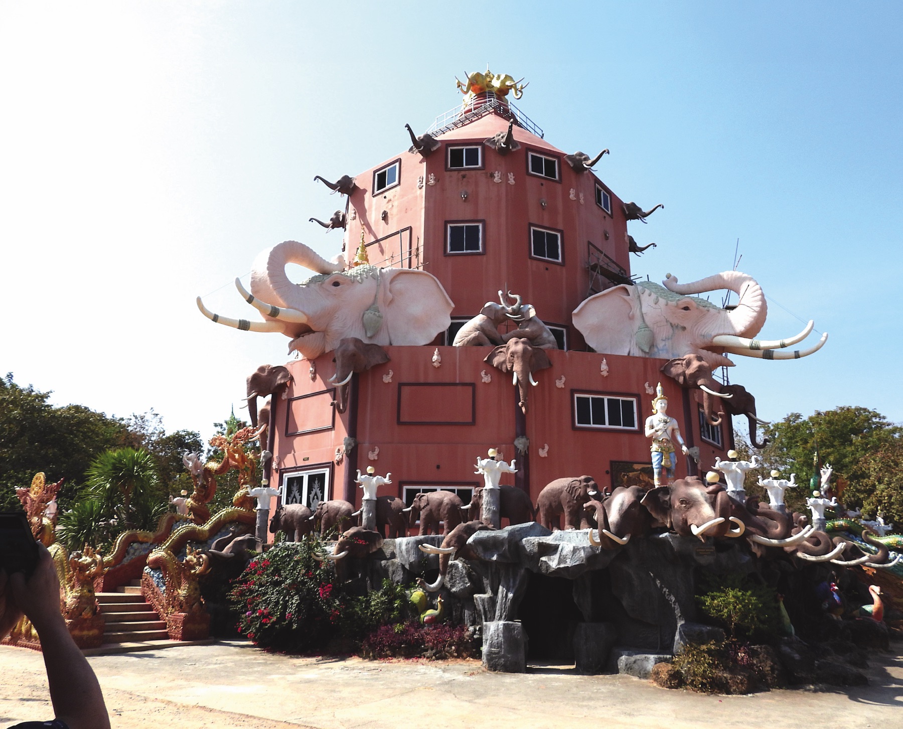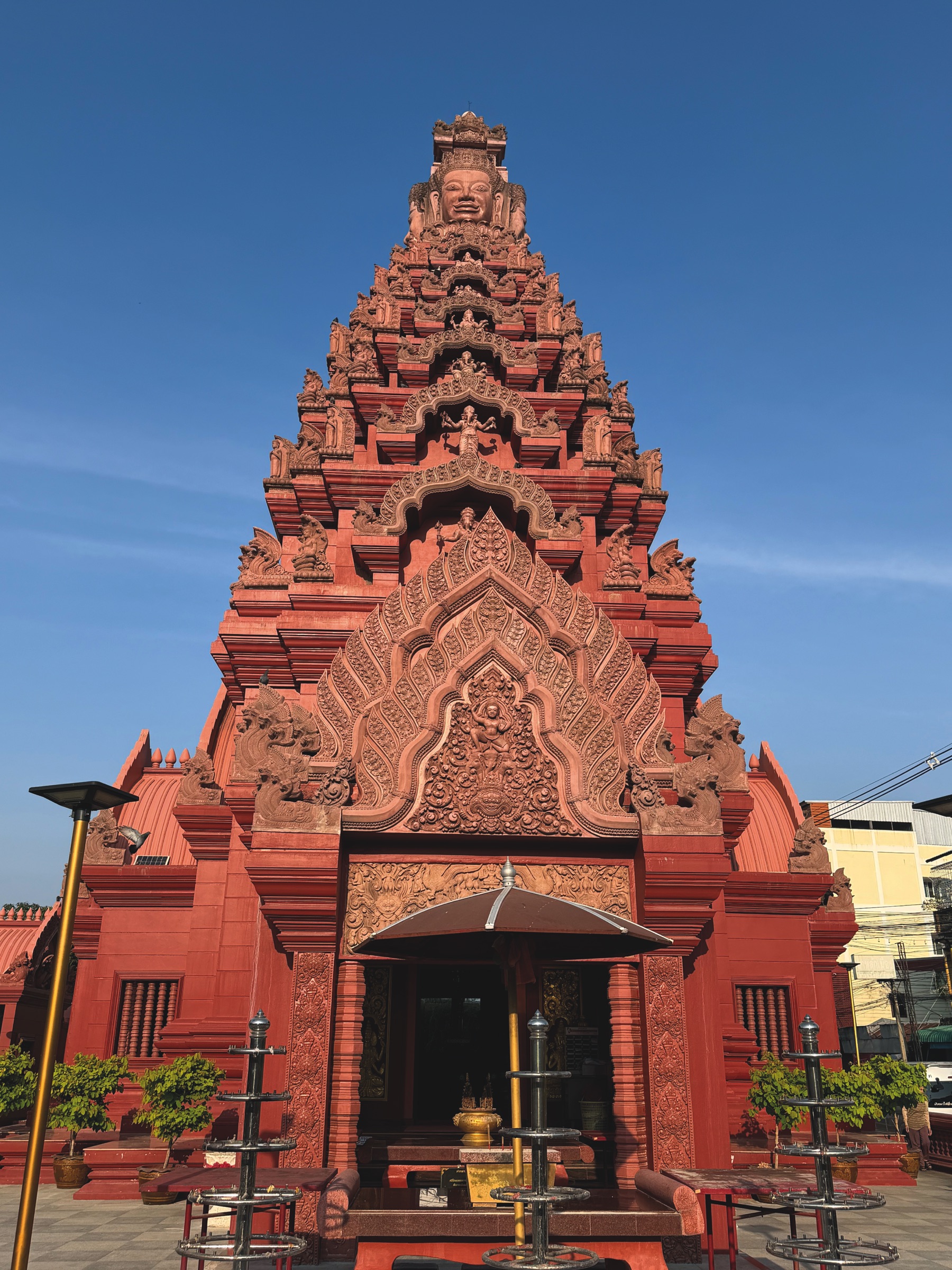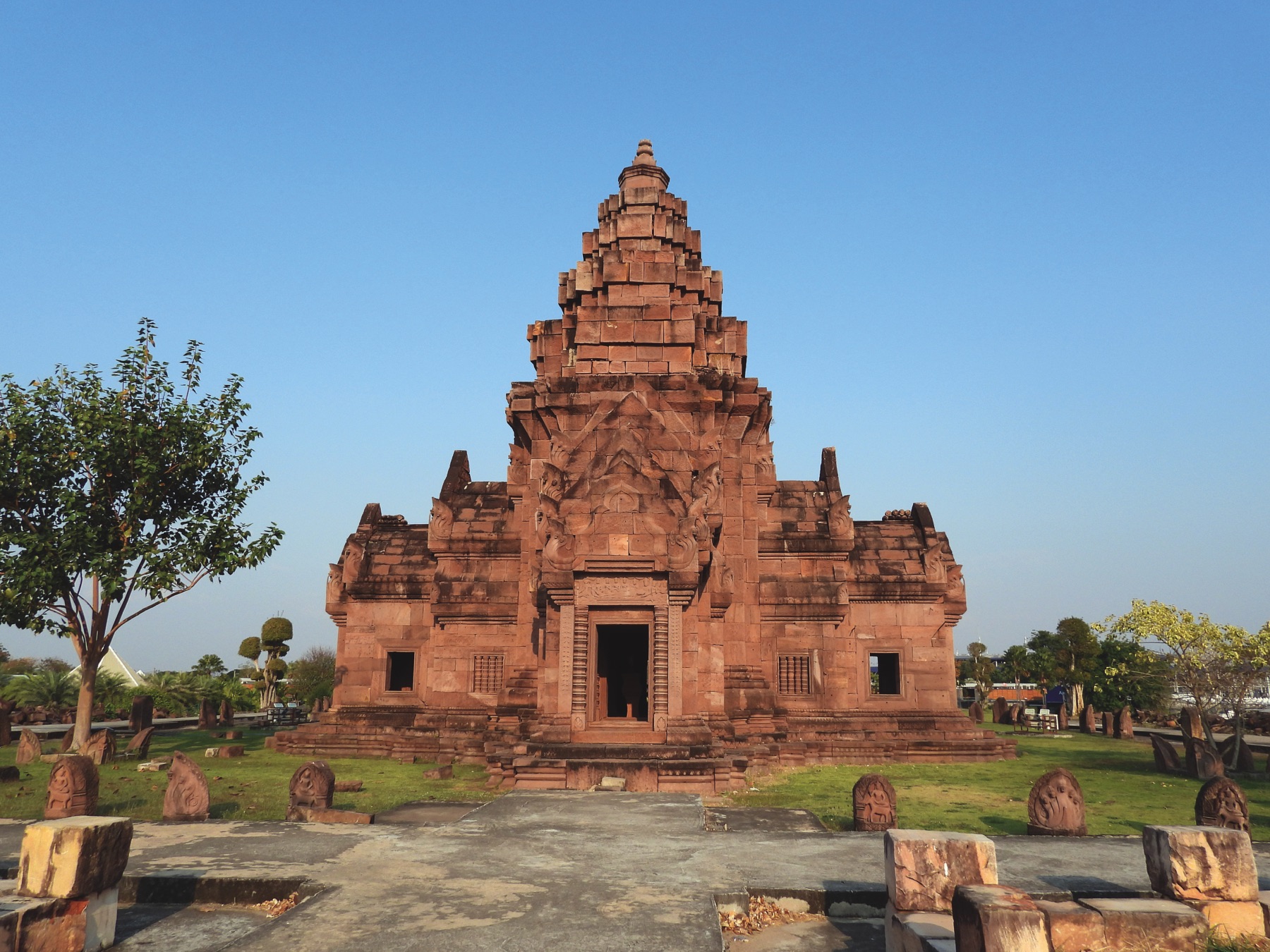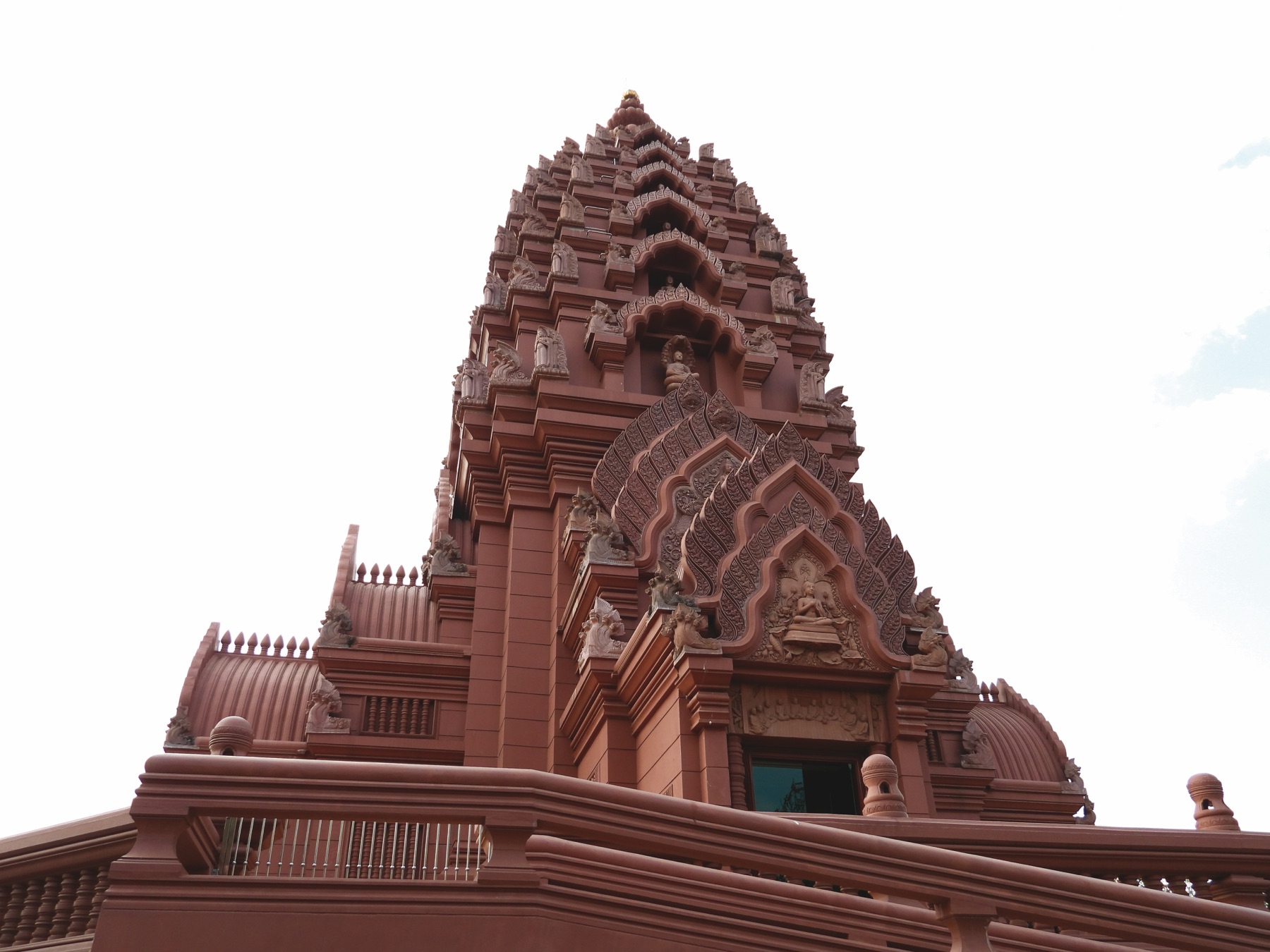 A one hour drive took us to Wat Pa Khao Noi (วั ดป่ าเขาน้ อย), whose name can be translated as the forest temple on the small mountain. It is a renowned monastery of the forest tradition, founded in 1936. This monument is far from ordinary – it takes the form of a prasat in neo Khmer style, inspired by the most beautiful Khmer temples. The impressive pink sandstone structure rises 31 meters high.