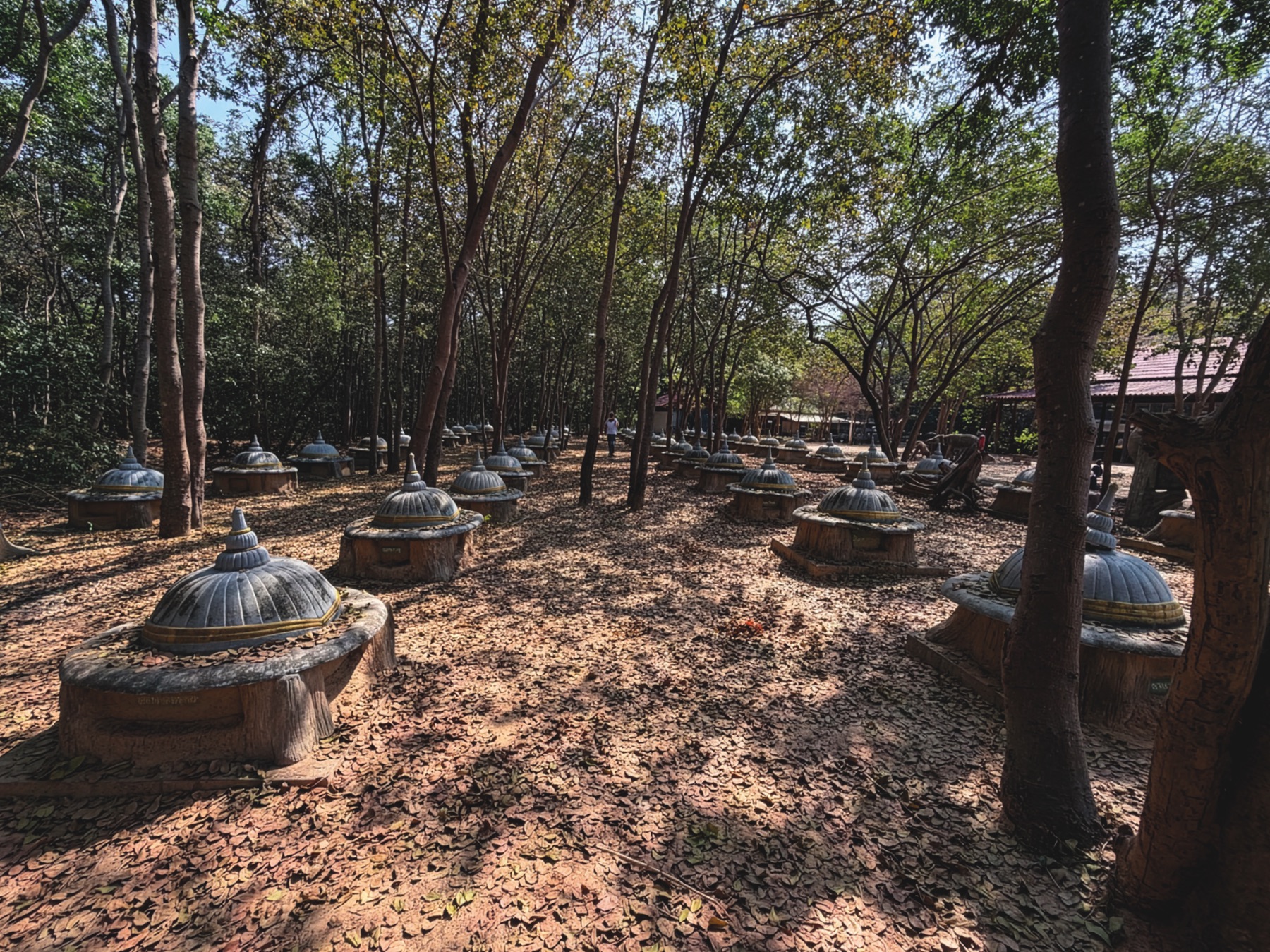 We then visited Wat Pa Achiang (วัดป่าอาเจียง), a unique temple with a powerful atmosphere. Here you can see the Elephant Graveyard, created after Dr. Prakrusamuh dreamt that an elephant he once cared for wished to “return home.” He then began building the cemetery, keeping detailed records of each elephant laid to rest there.