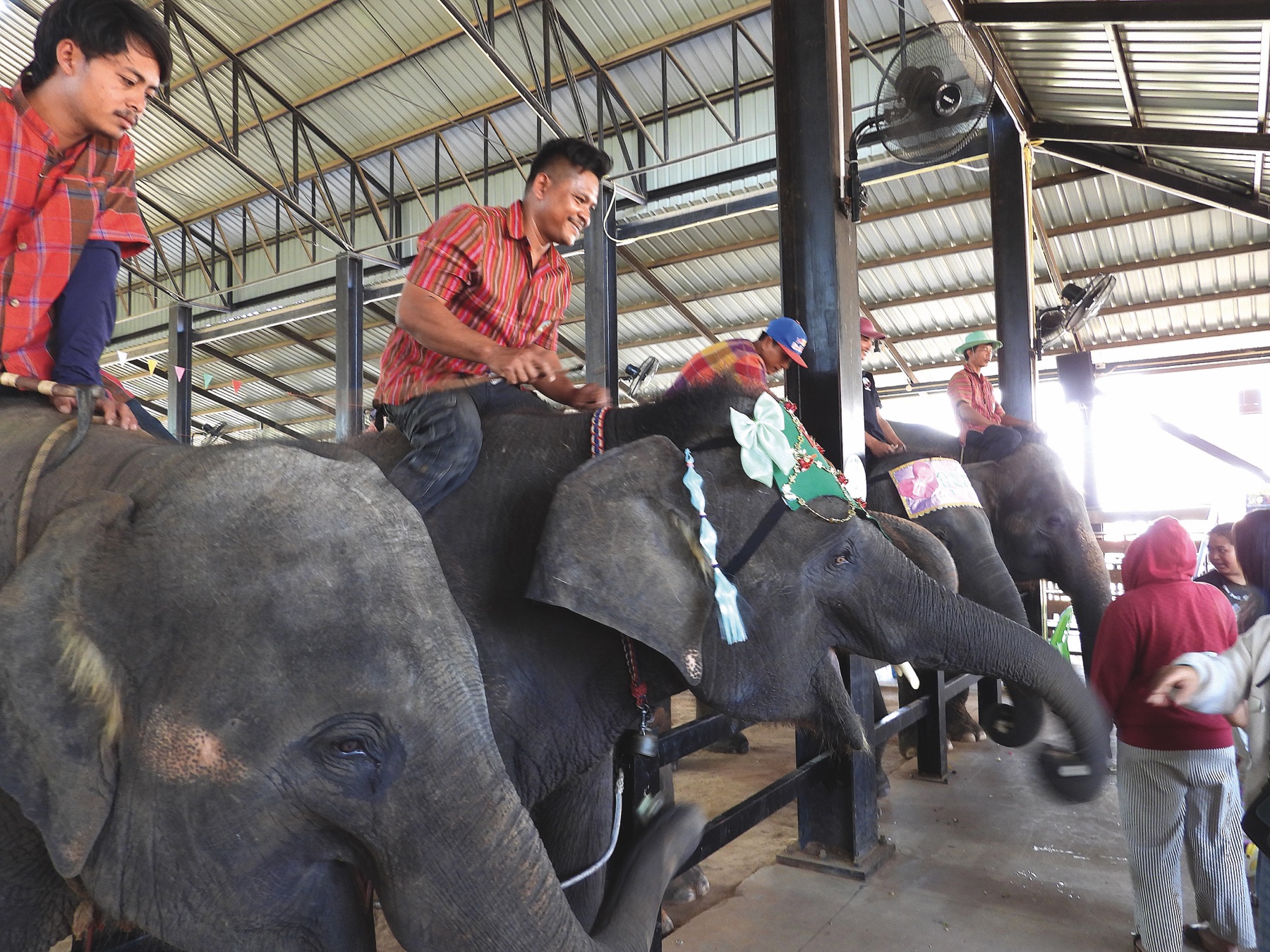 Our next stop was Elephant World, which hosts two daily shows at 10 a.m. and 2 p.m, with an entrance fee for tourists of 100 THB per person. This large complex, run by the Provincial Administration Organization of Surin Province, serves as a study centre where families can learn about the intelligence and abilities of elephants. The entertainment show is fun, and the elephants interact with the audience, receiving treats for their efforts (we’ve also included a video on our online magazine).