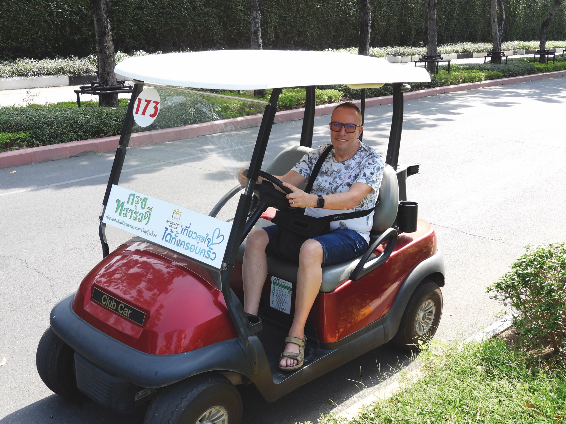 On our way back to Bangkok, we visited Ancient City, (เมื องโบราณ), one of the largest open air museums in the world. Here you can see significant Thai landmarks – castles, palaces, temples, and sculptures. Some are replicas, while others are original structures relocated from their original sites. The exhibitions are arranged by region, allowing visitors to appreciate the diversity of Thai culture. The experience feels like travelling across the entire country in a single day. We rented a golf car to explore the grounds, which is ideal for families.