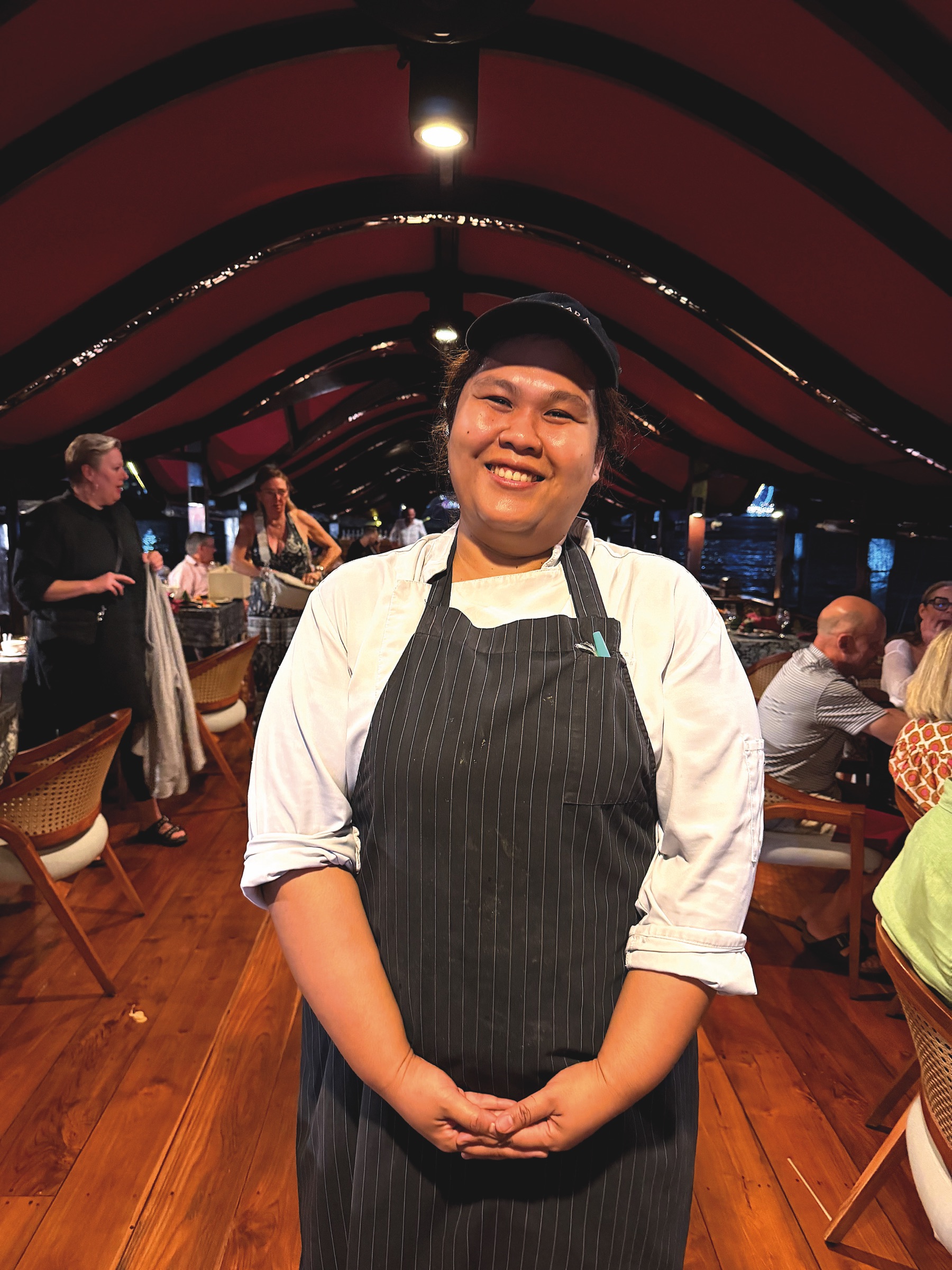 The service was professional and friendly, and the food was worthy of a Michelin restaurant. I was curious to meet the chef behind such excellent dishes. Near the end of the cruise, I asked if I could meet her on the deck. What a surprise it was when a young woman came to greet us – and all the guests applauded her.