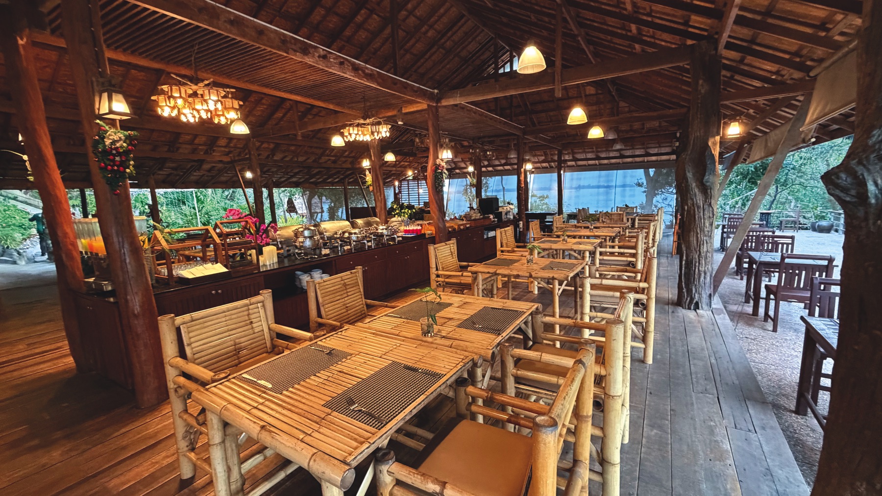 Our first stop was Khao Sok River Canoe & Resort, a unique place where each room is an individual bamboo house. To protect guests from insects, the bedroom is set inside a large tent with air conditioning. The terrace overlooks the river – peaceful and beautiful.