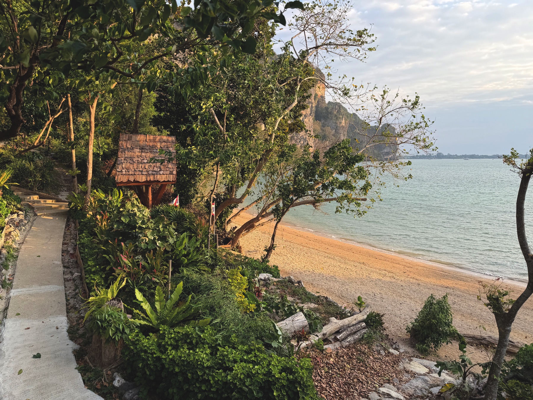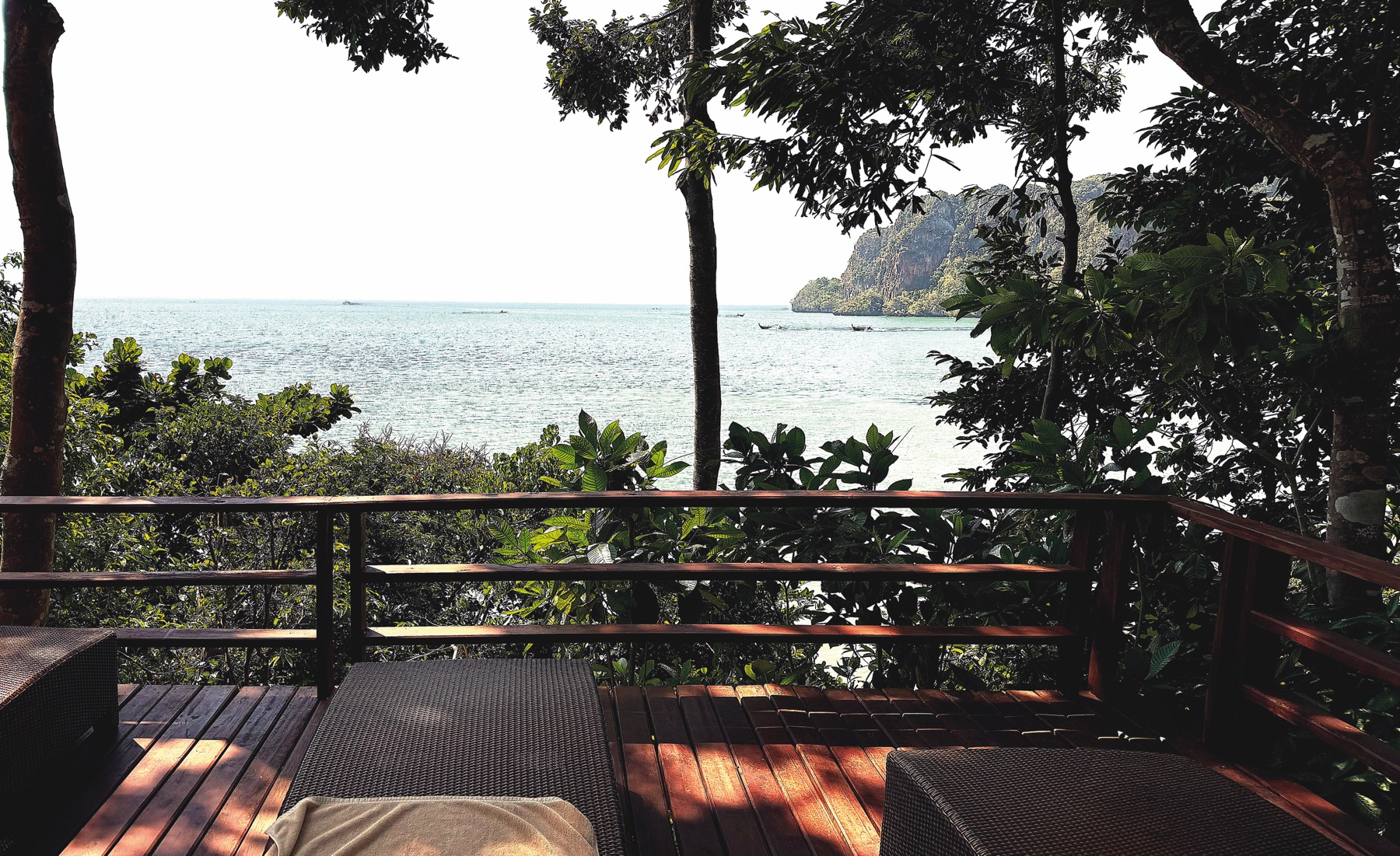 We continued to our final hotel, Railay Great View Resort & Spa. The only way to reach it is by longtail boat. A few times per day, the hotel provides a free boat from Ao Nam Mao Pier (ท่าเรืออ่าวน้ำเมา). Otherwise, you can take a boat for 100 THB to the Floating Pier at East Railay and walk about 900 metres to the hotel. We missed the hotel boat, and the private ride was quoted at 1,000 THB for less than 10 minutes. After some friendly negotiation, we agreed on a better price, and ten minutes later, we arrived in paradise.