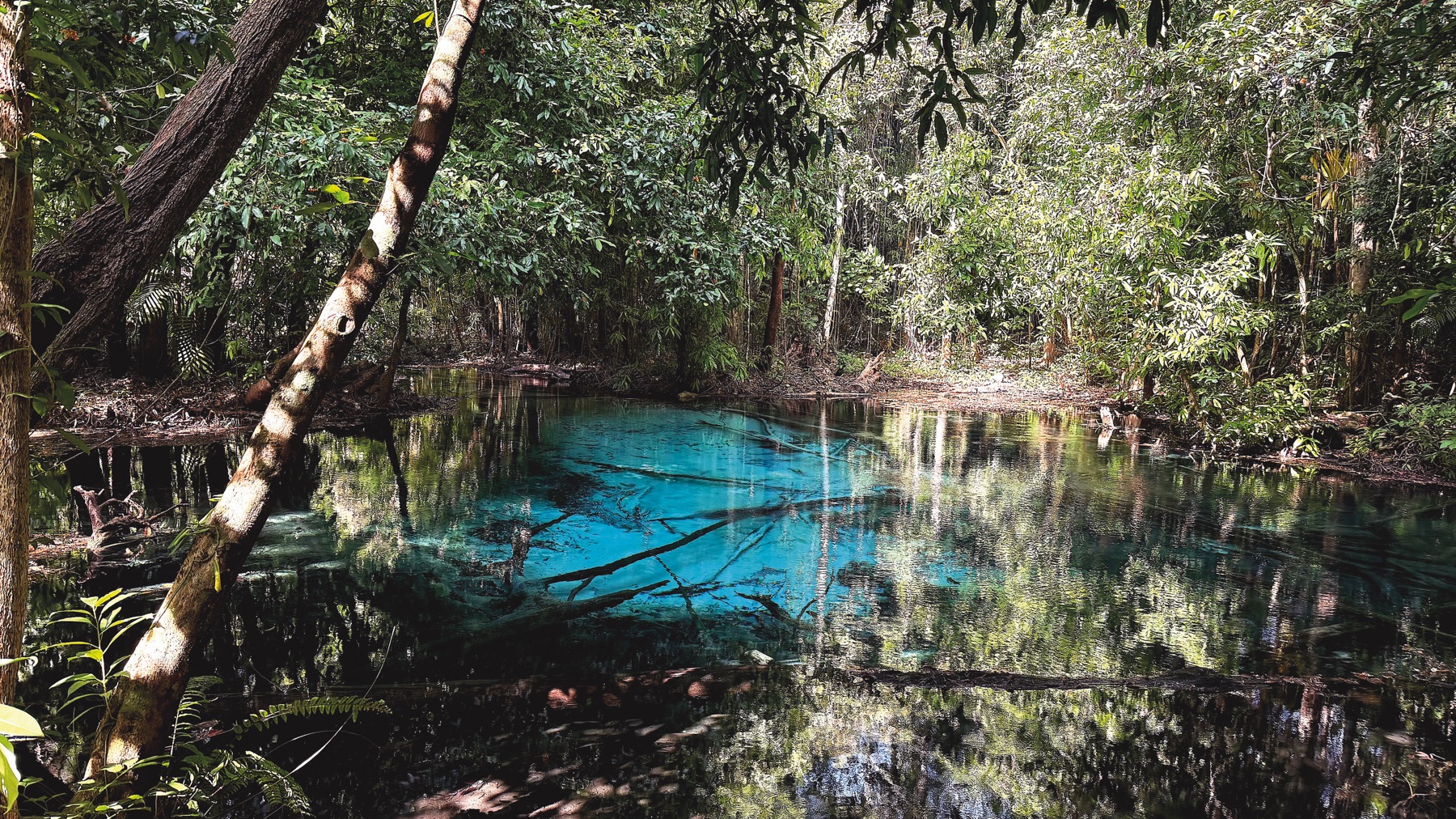 The next day, after a rich breakfast, we took the public boat to Krabi for another day of exploring. Our first stop was the Emerald Pool (Sa Morakot) สระมรกต in the Khao Phra Bang Khram Nature Reserve (เขตรักษาพันธุ์สัตว์ป่าเขาประ-บางคราม). Famous for its vibrant emerald green waters, it’s perfect for swimming or soaking in mineral rich water, which are believed to have health benefits. A 15 minute walk deeper into the reserve leads to the Blue Pool, a breathtaking sapphire blue spring. Swimming is strictly prohibited due to quicksand and fluctuating water temperatures.