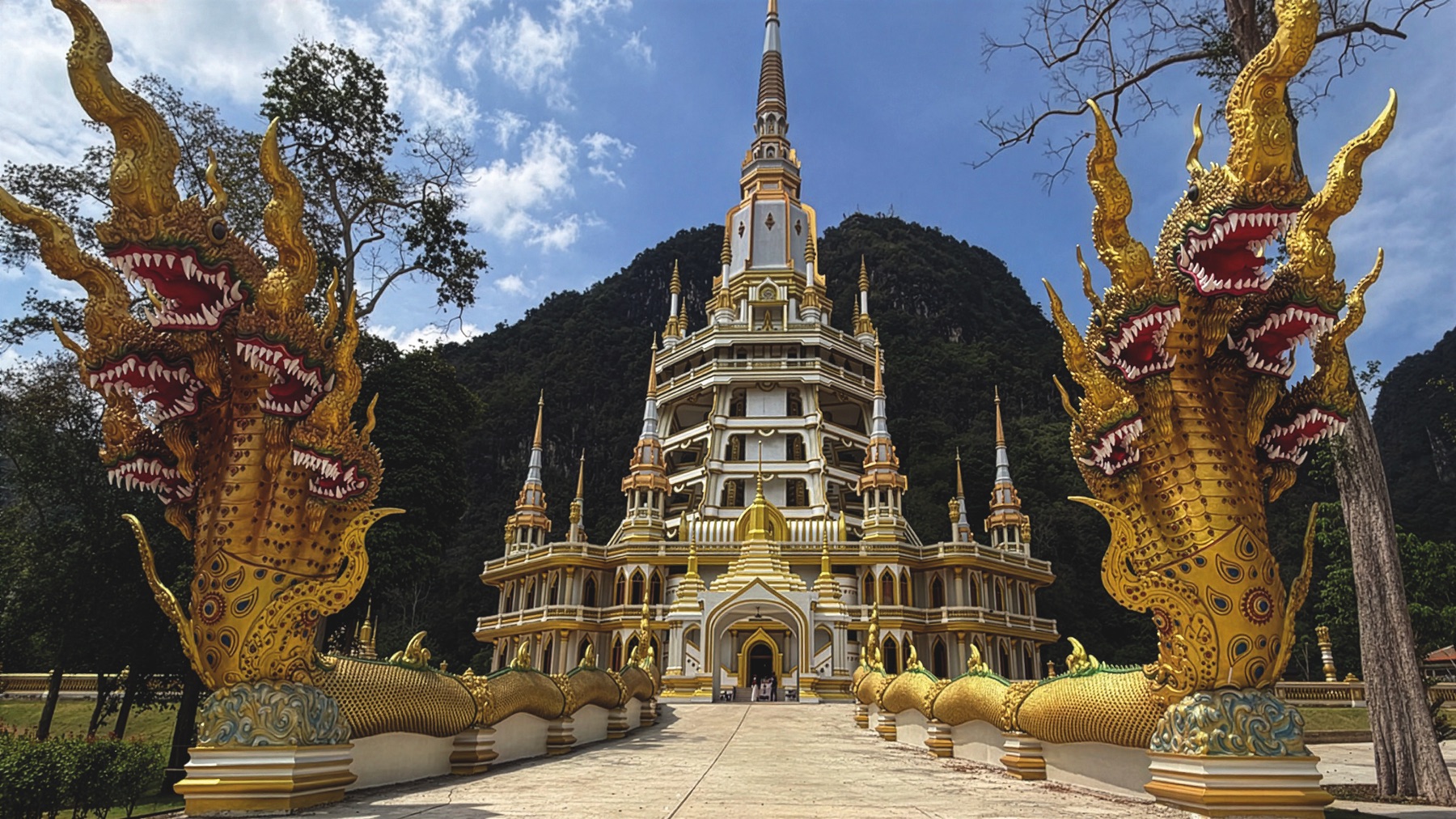 Our driver from Beer Trekking Thailand Tour was waiting to take us to Krabi, with a stop at Wat Maha That Wachiramongkol (Wat Bang Thong) – a Royal temple built around 1940. In 2002, the Mahatherasama Committee initiated the construction of a Buddhist site and a Mahathat Chedi to honour His Majesty. The highlight is the Phra Maha That Chedi, approximately 95 metres high, built to honour King Vajiralongkorn.