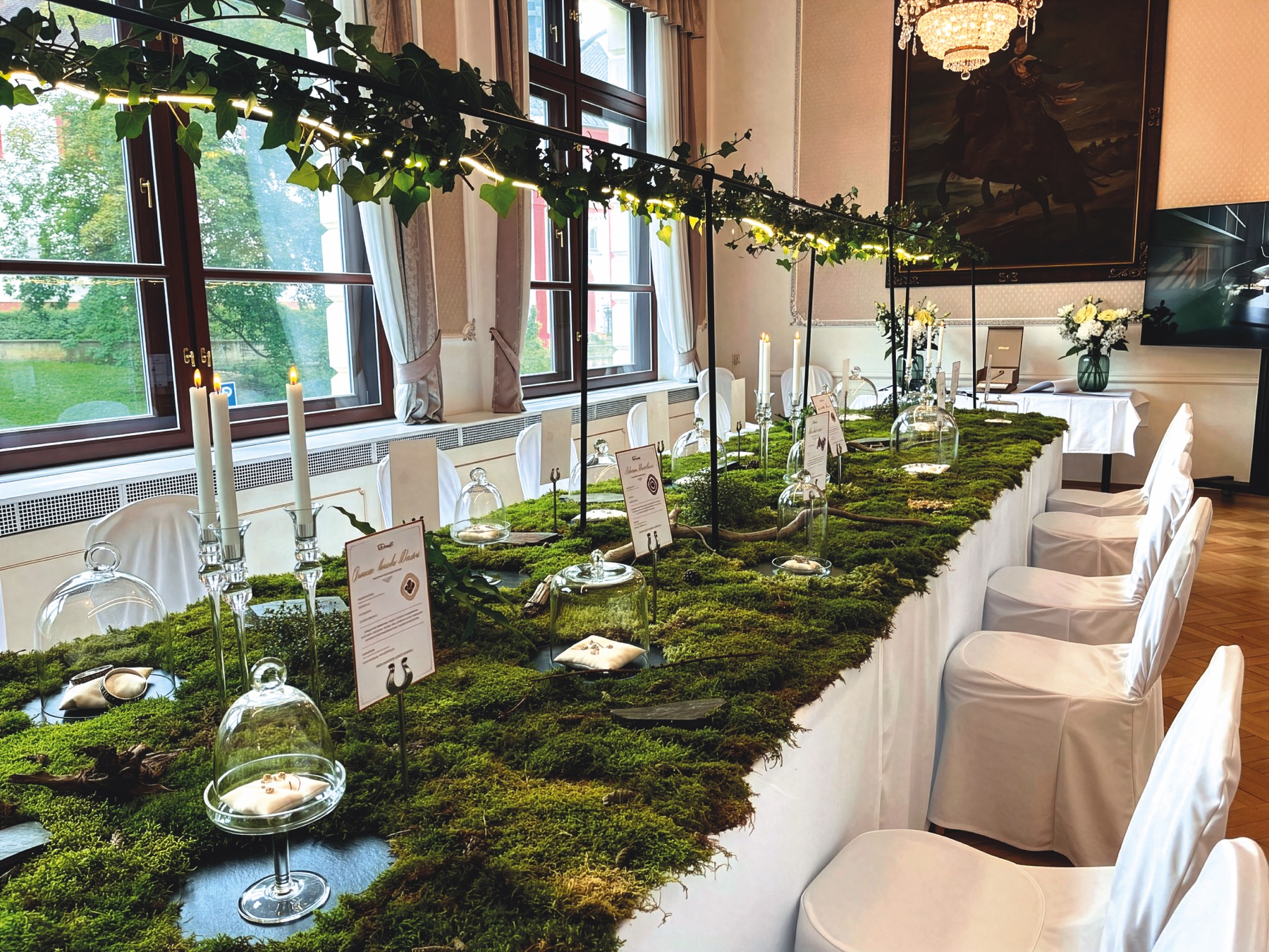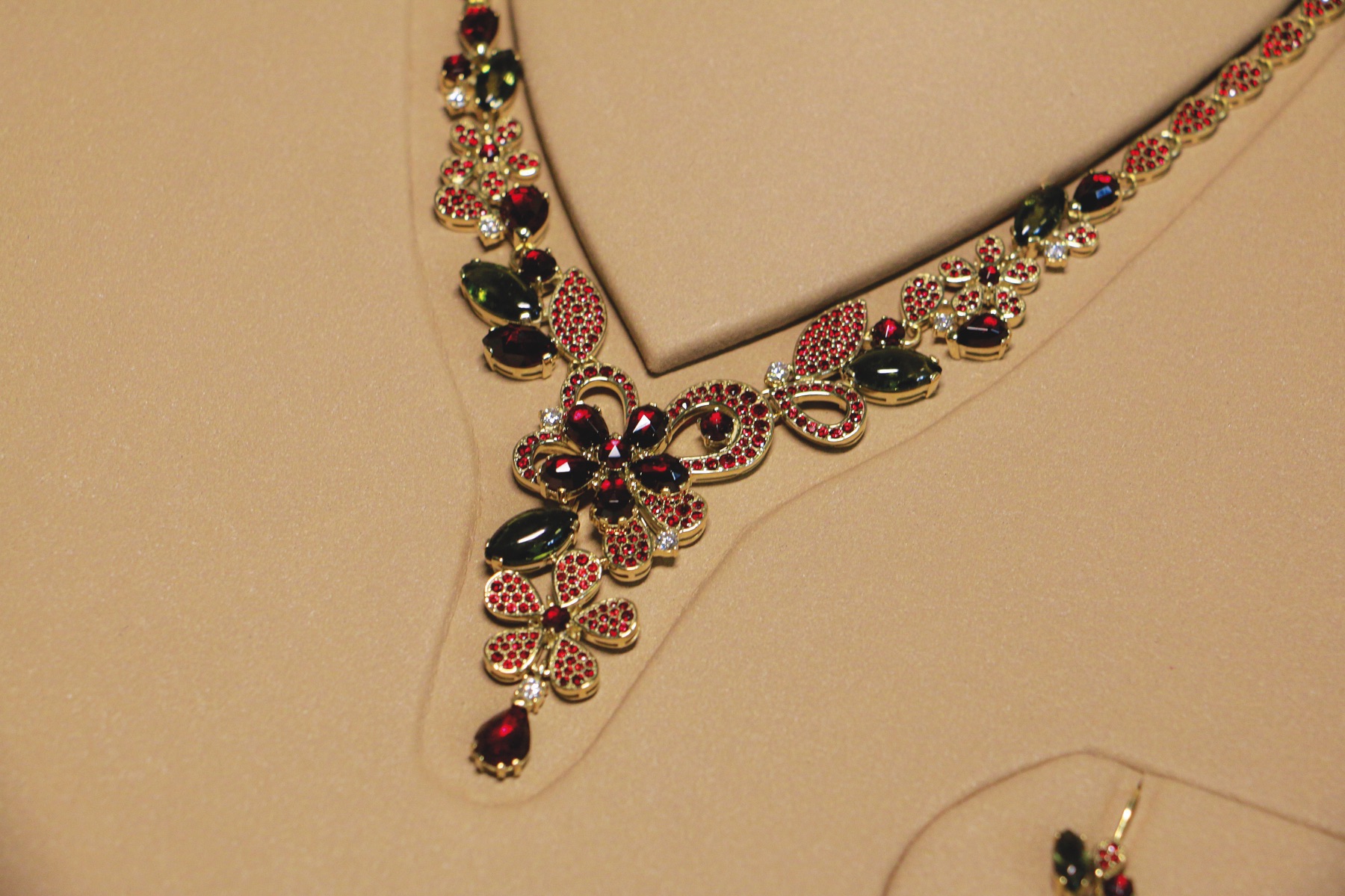 At the end of the summer, we organised the exhibition Tasting Czech Garnet at the Clarion Grandhotel Zlatý Lev in Liberec as part of the Crystal Valley project. Jewellery was presented as a festive feast on a richly decorated table. This exhibition marked the first presentation of the exclusive EXPO set in the Czech Republic, along with new collections created for this autumn and winter.
