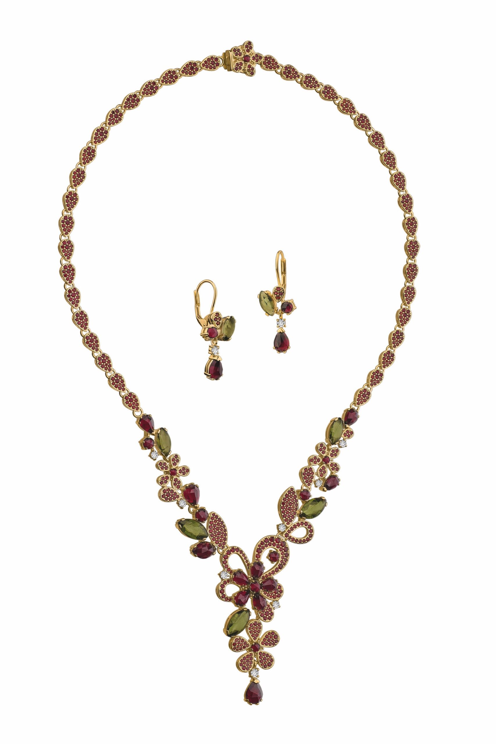 For this occasion, we prepared an exclusive gold set consisting of a necklace and earrings adorned with Czech garnets of unique sizes, diamonds, and moldavites. The set was designed and crafted by our designers and goldsmiths, inspired by symbols of Czech and Japanese culture. It was first unveiled to the public at the EXPO.
