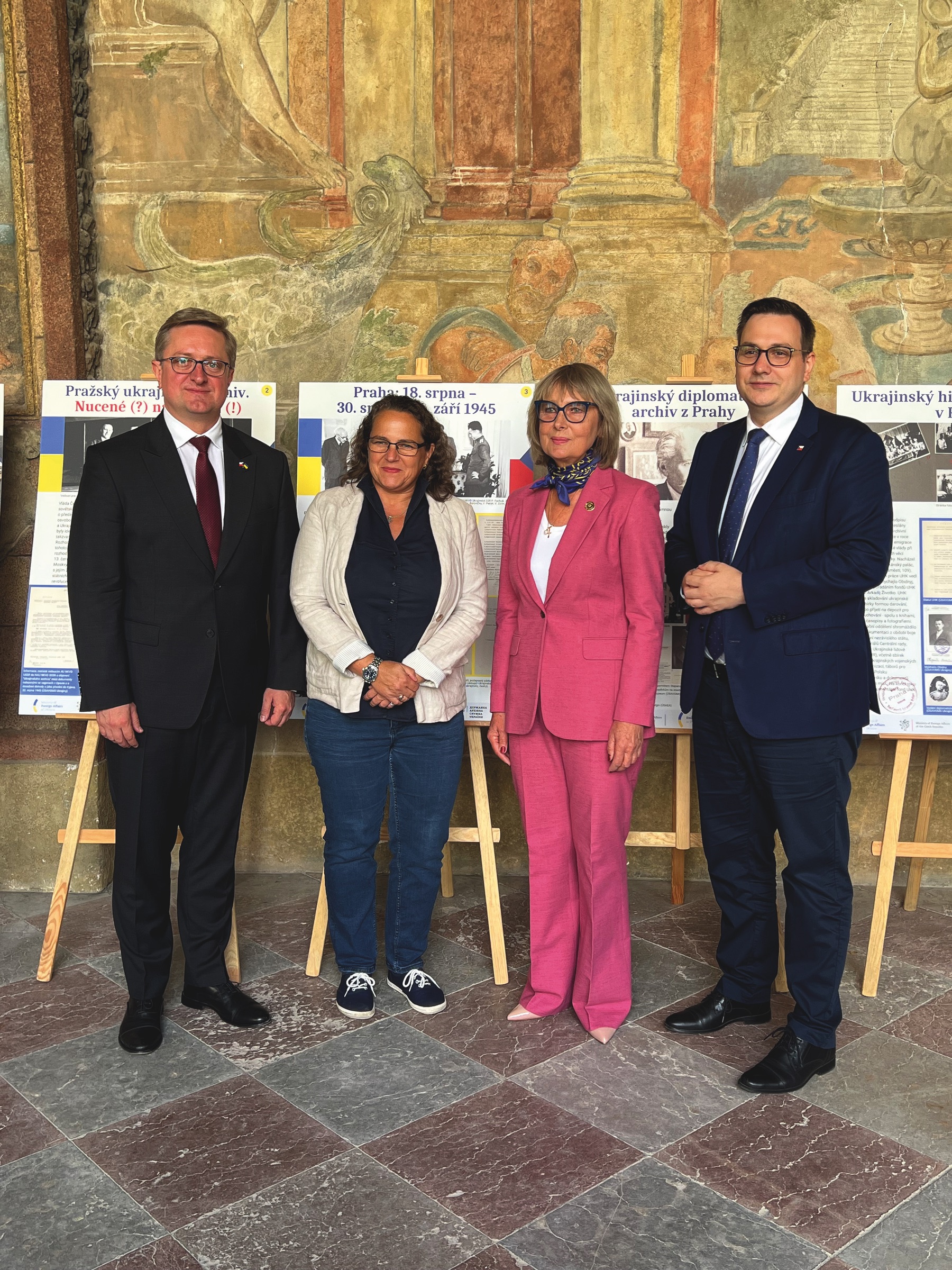H.E. Mr. Vasyl Zvarych, Ambassador of Ukraine to the Czech Republic, Ms. Terezie Radoměřská, Mayor of Prague 1, Ms. Iryna Matiash, Exhibition Curator, and Mr. Jan Lipavský, Minister