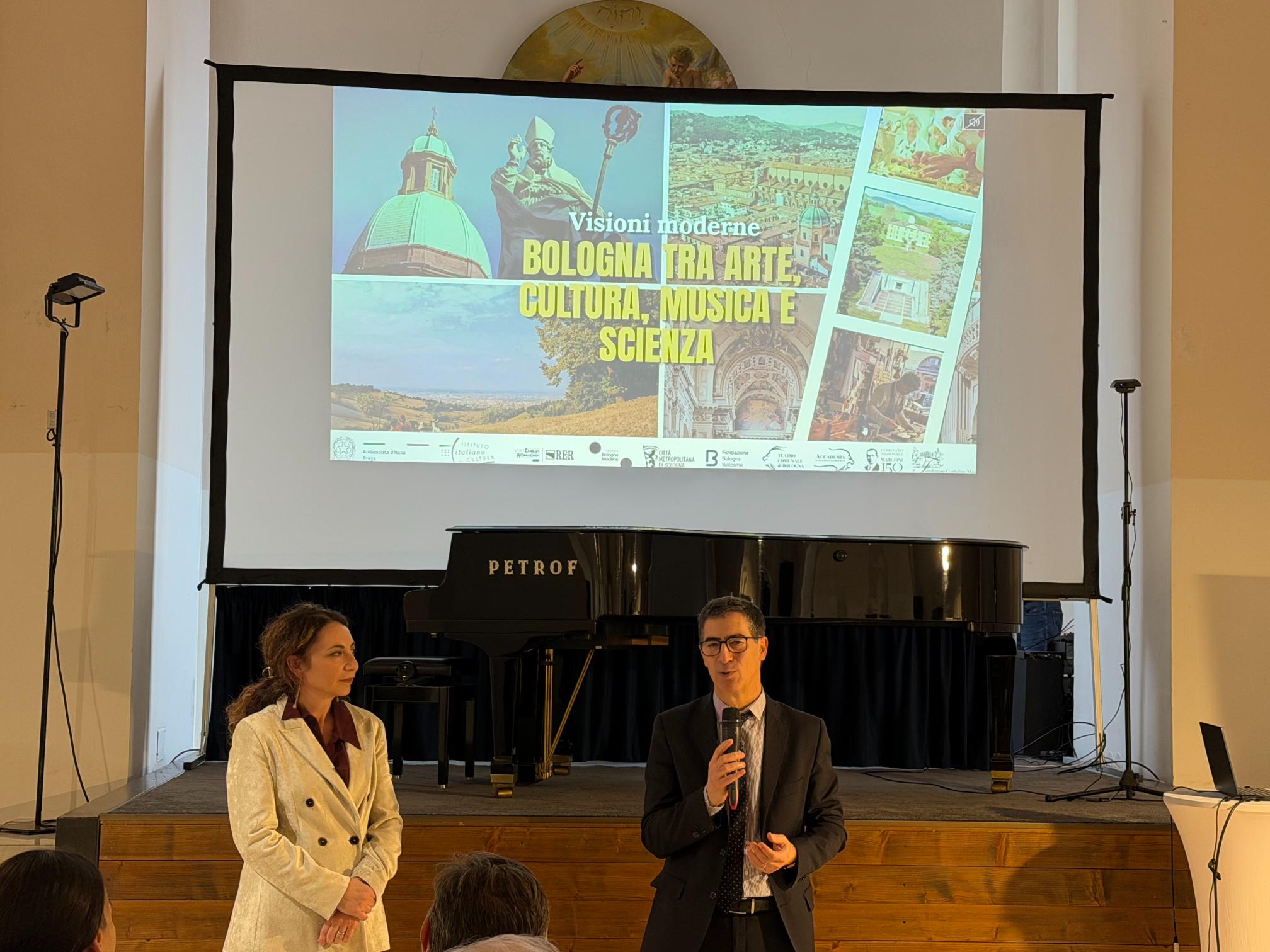 The evening, attended by  H.E. Mr. Alessandro GAUDIANO, the Ambassador of Italy to the Czech Republic, was dedicated to the many treasures of Bologna and its surroundings, renowned worldwide for their artistic, gastronomic, musical, and scientific heritage.