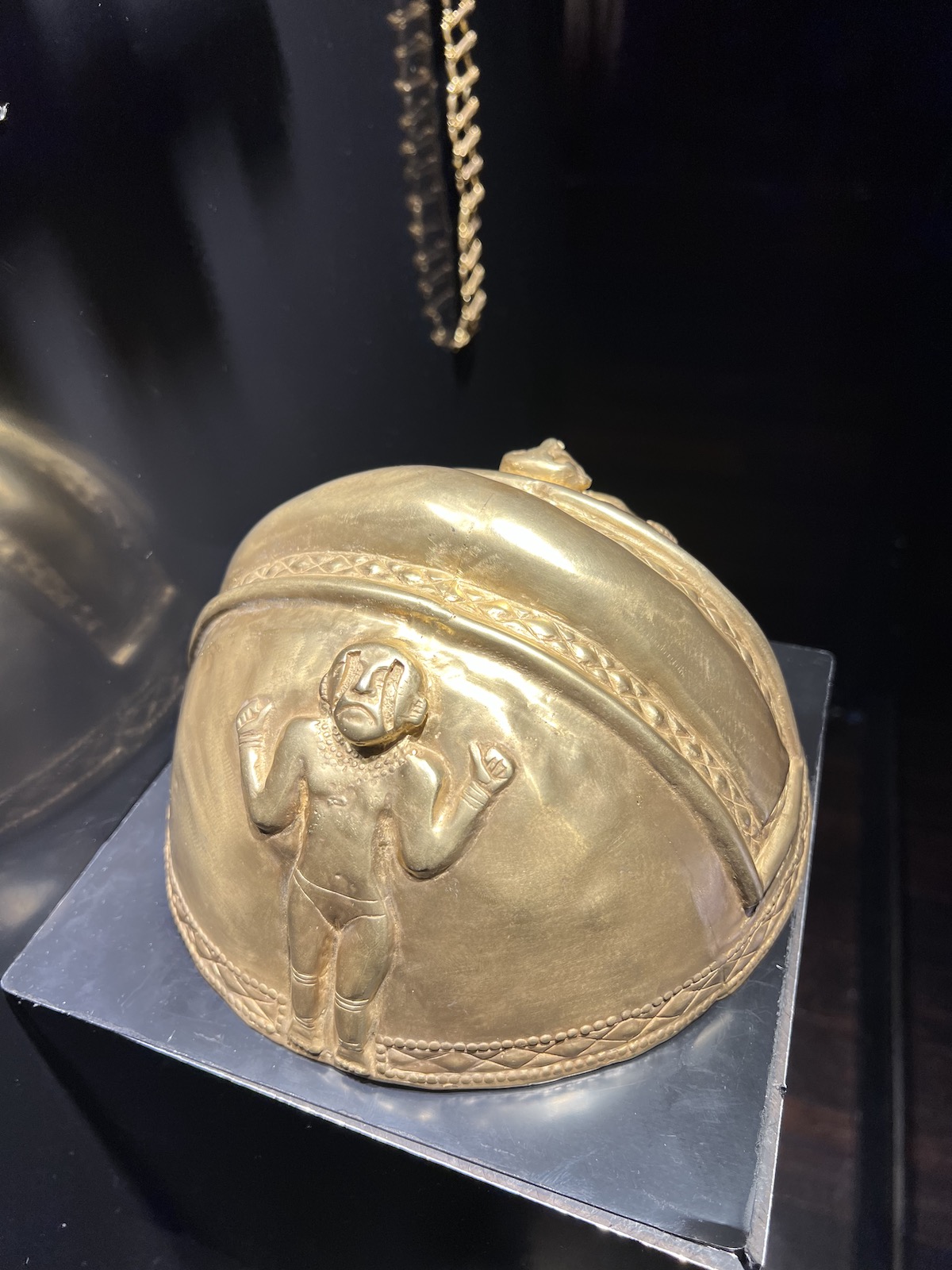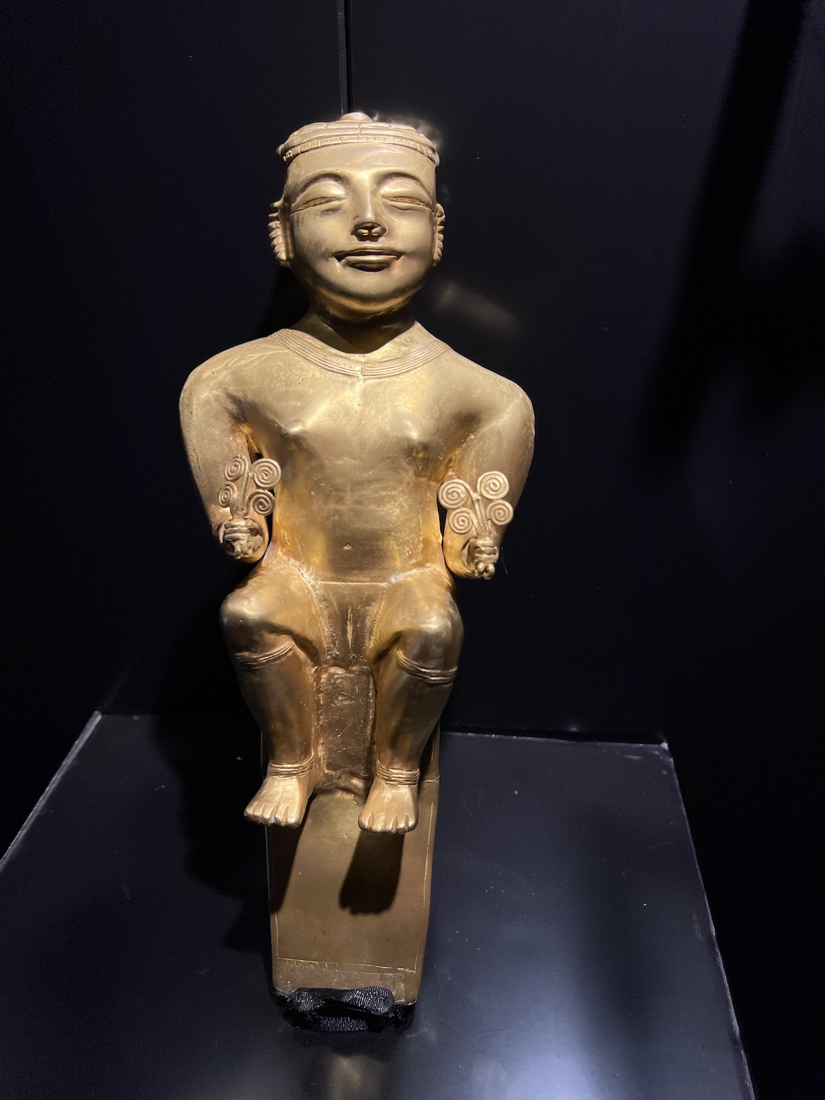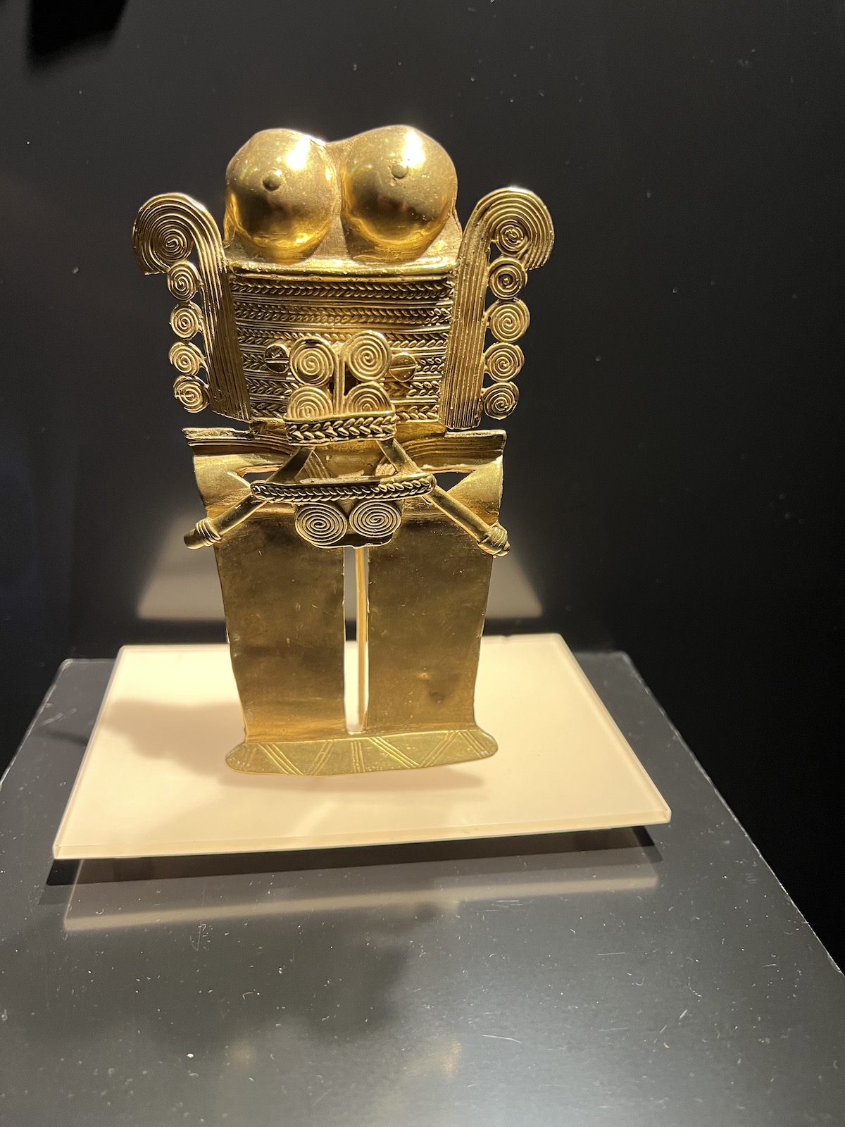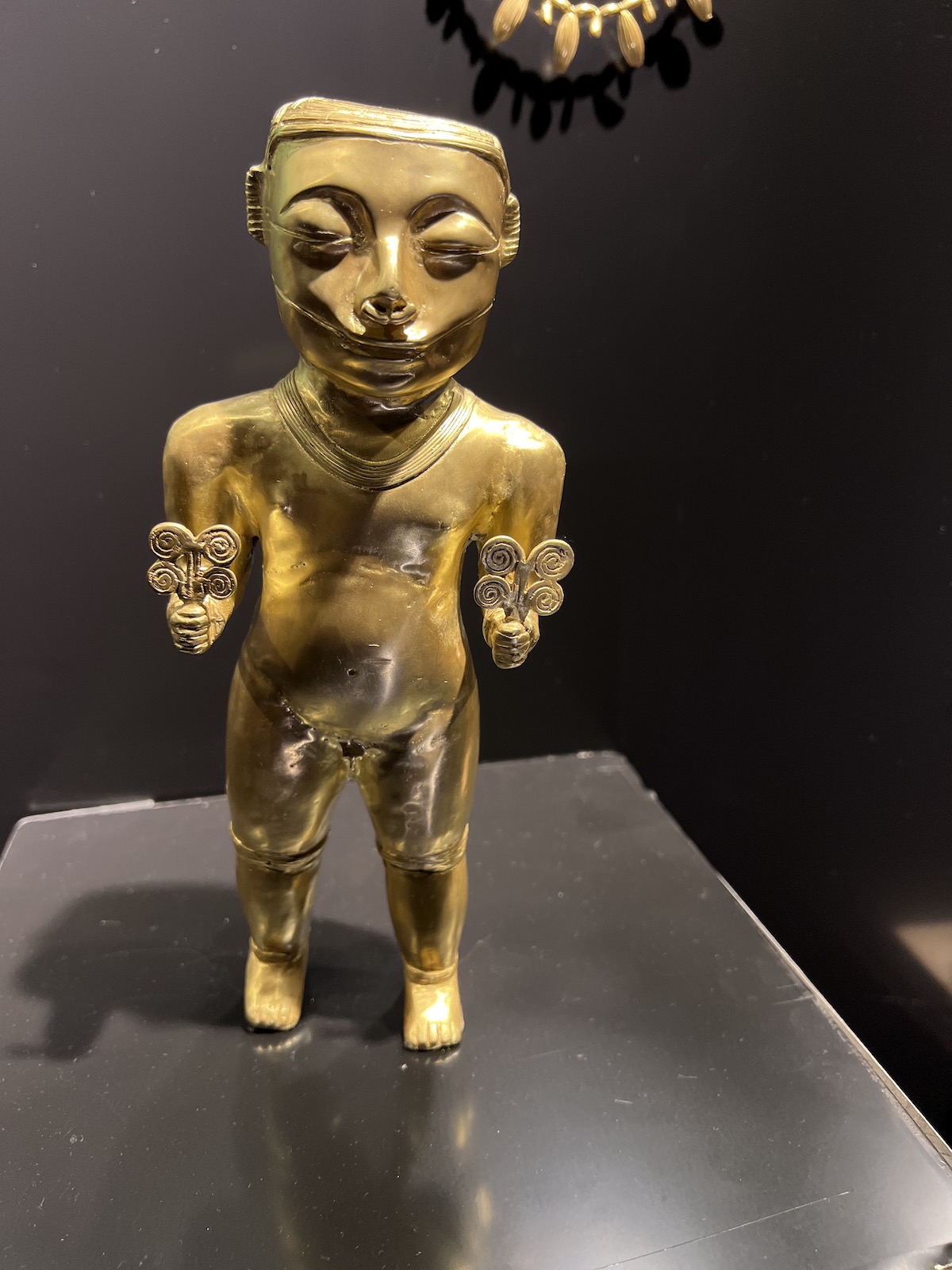 Gold and Coca Leaf is a traveling exhibition that, in nine European countries, proposes a dialogue between heritage,contemporary art,and publicpolicy. At its core are 56 exactreplicas of the Quimbaya Collection, created by master goldsmith Omar Hurtado in dialogue withk knowledge bearers, and La Chagrade Amoka, awork by Tatiana Arocha centeredon the coca leaf as a living archive of the forest and of biocultural memories.