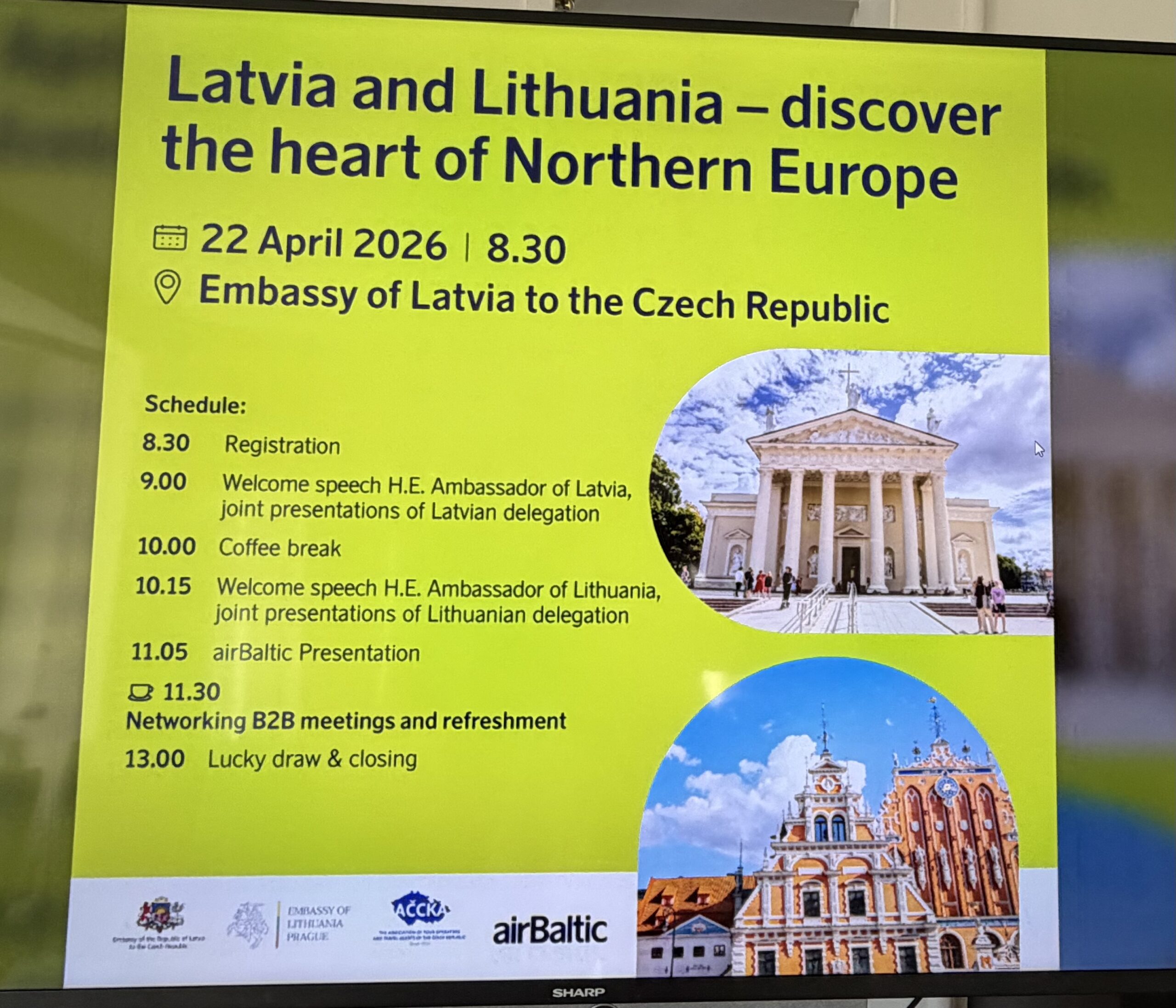 The Embassy of Latvia in Prague, the Embassy of Lithuania in Prague, and the Association of Tour Operators and Travel Agents of the Czech Republic (ACCKA), organized a seminar “Latvia and Lithuania – Discover the heart of Northern Europe” at the Embassy of Latvia in Prague.