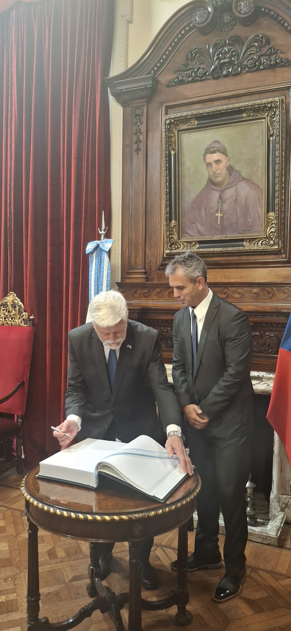 During their stay in Buenos Aires, the presidential couple visited the Holocaust Museum and the Czech House, where they met with representatives of the Czech expatriate community. The President also gave a lecture at the Argentine Council for International Relations.